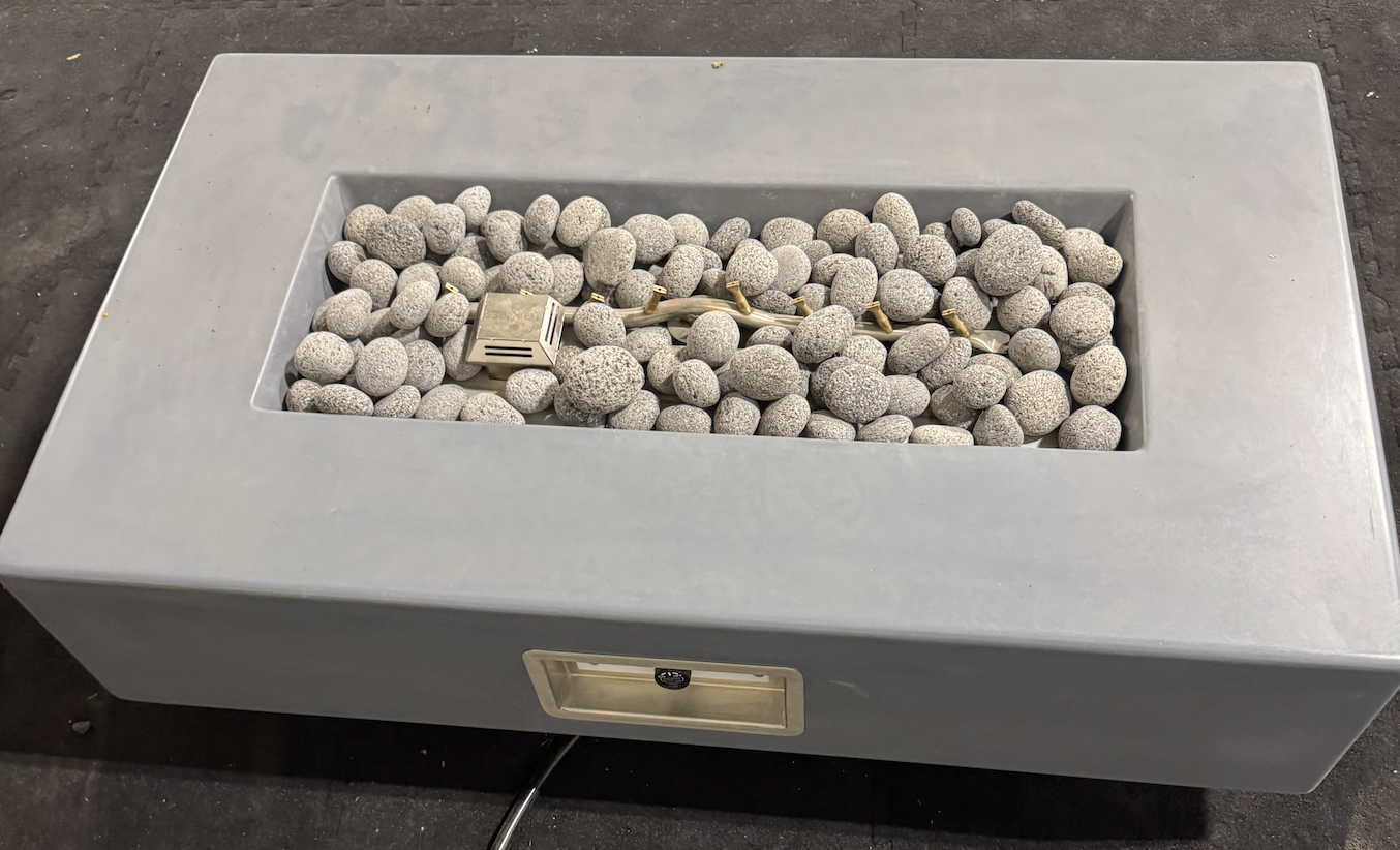 Enjoy a warm and comfortable ambiance of 65,000 BTUs during the chilly nights with this Del Mar. The upgraded polished lava rock does a wonderful job at concealing the stainless steel burner and will add a subtle, natural element underneath the flames. This fire feature is handmade in the USA using glass fiber reinforced concrete to ensure your investment remains steadfast against the natural wear and tear the outdoor elements can bring. That means more years spent around the fire with family and friends.